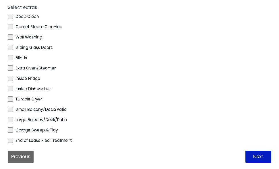 When you book your cleaning service in Sydney online, our system calculates the size of your home using the number of bedrooms and bathrooms. You can then customise your service with optional extras and we’ll estimate the amount of work required.